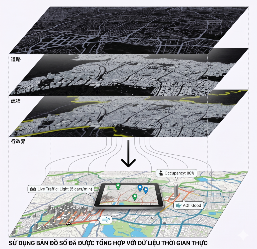 Nếu bạn cần một ví dụ thực tế để hình dung “hạ tầng dữ liệu” trông như thế nào, Nhật Bản là một trường hợp đáng tham khảo. Ở đó, dữ liệu nền và các dịch vụ bản đồ trực tuyến cho phép người dùng tải và xem nhiều lớp dữ liệu khác nhau, tạo điều kiện để các bên tiếp cận dữ liệu một cách tương đối thống nhất. Đồng thời, cũng có xu hướng xây dựng những cổng tập trung để tìm kiếm và tải dữ liệu không gian từ nhiều nguồn. Dù mỗi quốc gia có cấu trúc quản trị khác nhau, bài học cốt lõi vẫn rõ ràng: Digital Twin đô thị không thể phát triển bền vững nếu thiếu dữ liệu nền chuẩn hóa và cơ chế chia sẻ đủ tốt.