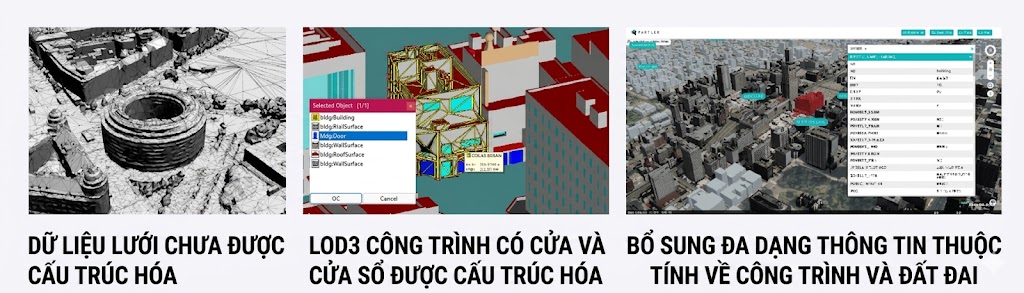 Điểm thú vị là: một mô hình đô thị 3D đúng nghĩa thường không được đánh giá bằng câu hỏi “nhìn có giống thật không?”, mà bằng câu hỏi “tính được gì từ nó?”. Cũng vì vậy, để hiểu và triển khai Digital Twin đô thị một cách khoa học, ta cần nắm ba lớp ý chính: (1) mô hình 3D gồm những “thành phần thông tin” nào, (2) mức độ chi tiết (LOD) khác nhau dẫn tới khả năng khai thác khác nhau ra sao, và (3) dữ liệu nên được dùng trực tiếp hay cần trích xuất, chuyển đổi để phù hợp với công cụ triển khai.