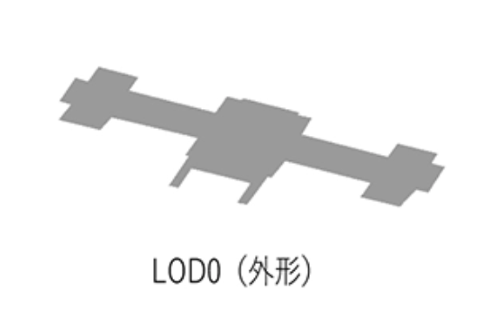LOD0 là mức độ mô phỏng cơ bản nhất, thể hiện đối tượng dưới dạng các mặt phẳng hoặc đường nét 2D và hoàn toàn không có thông tin về chiều cao. Ví dụ, đối với một tòa nhà, LOD0 chỉ thể hiện đường viền móng nhà hoặc đường viền mái nhà khi nhìn từ trên cao. Cấp độ này thường được sử dụng làm dữ liệu nền tảng cho các bản đồ quy hoạch hoặc hệ thống thông tin địa lý (GIS) cơ bản.