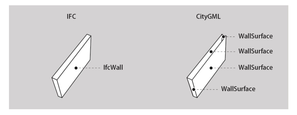 • IfcWall, IfcWindow được ánh xạ thành các thành phần kiến trúc tương ứng trong CityGML