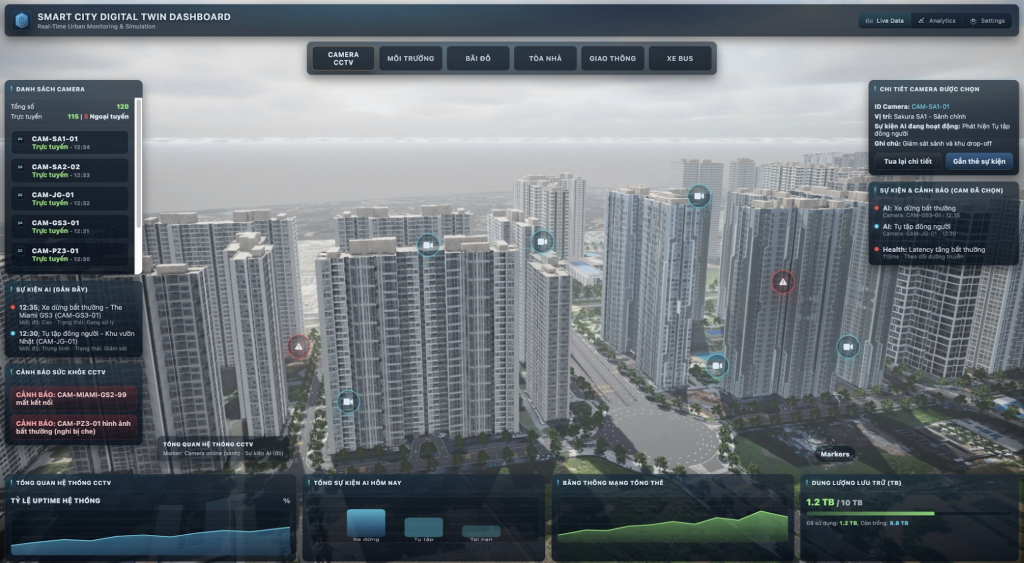 Tất cả được hiển thị trên một bảng điều khiển 3D trực quan, giúp tạo ra một trung tâm chỉ huy duy nhất cho toàn đô thị.