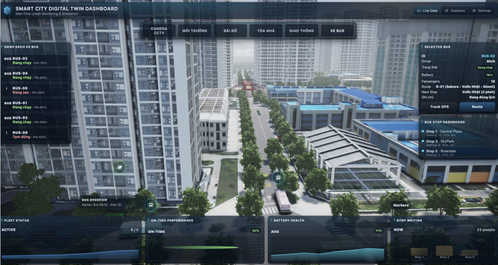 • Lớp nền tảng: Digital Twin Engine, xử lý dữ liệu, AI